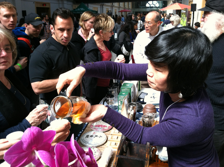 Pure Puer Tea is recommended and used by Dr. Marsha Nunley, MD for her weight loss program and to improve cholesterol and digestion. Dr. Marsha Nunley MD puer tea weight loss. Dr. Nunley is pictured (in red) above speaking to Larry and Yang Su at the 2013 San Francisco International Tea Festival.