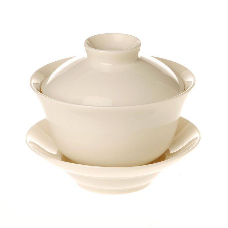 This classic gaiwan comes in bone white and matches all our other bone white china. It has a large capacity and is good for appreciating tea color and clarity.